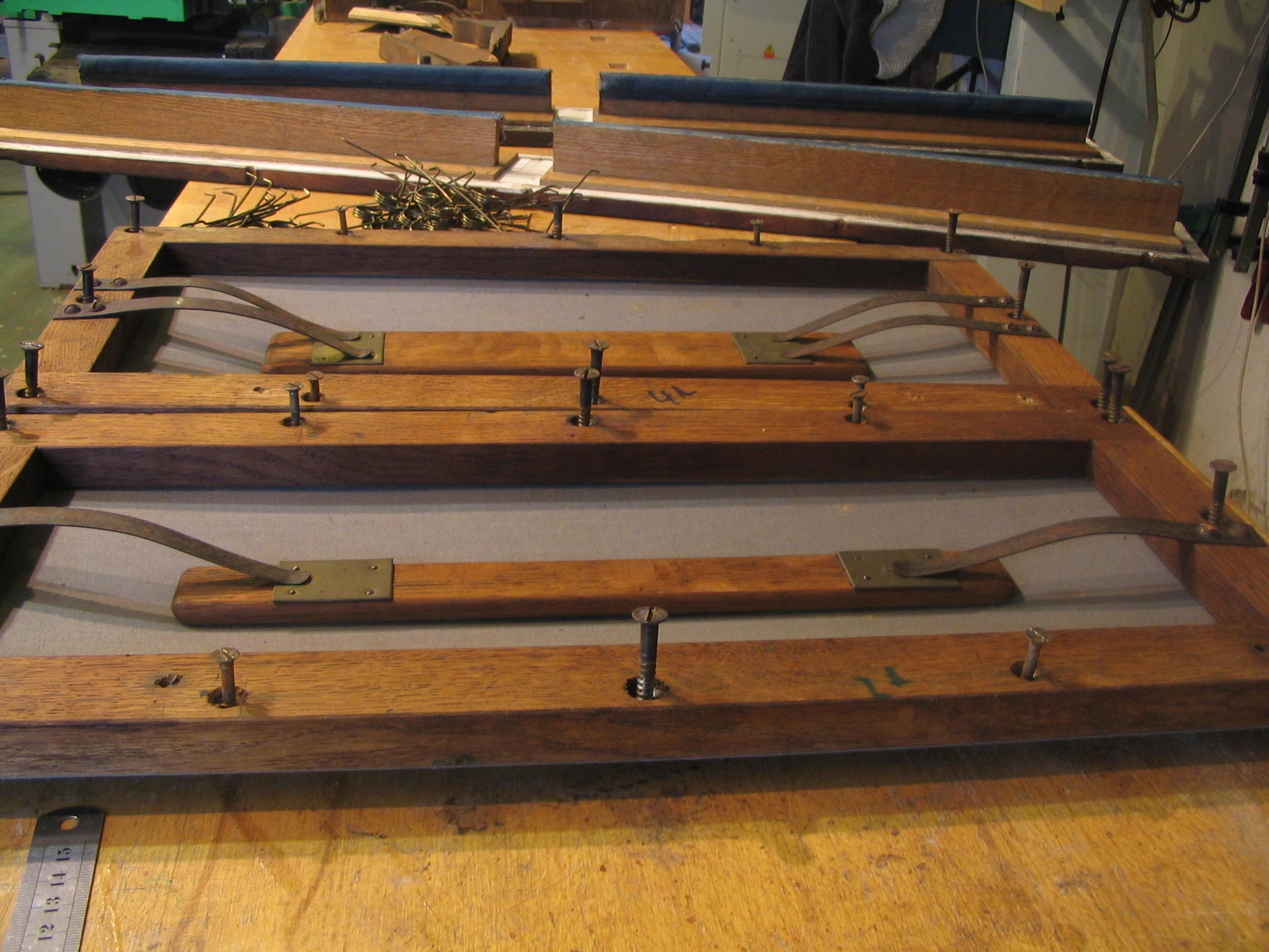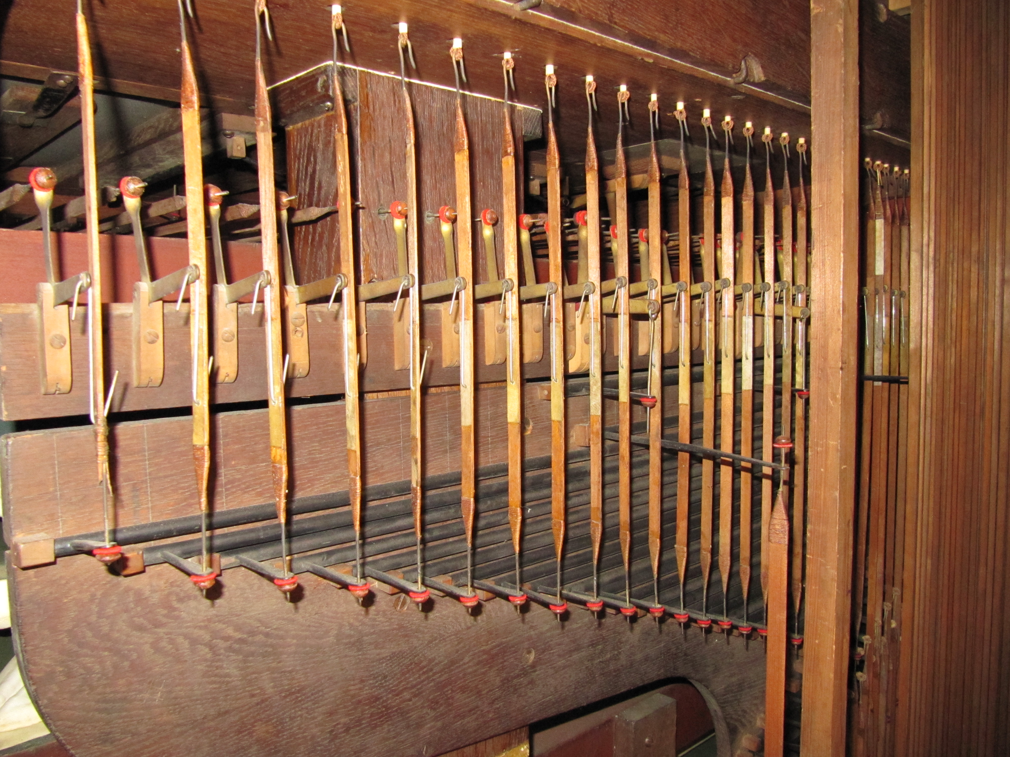 Nous constatons donc qu’il y a eu assez peu de modifications lors du transfert à Héricourt en 1888. Principalement une translation vers le grave du plan de Pédale qui disposait d’un ravalement au F de 16′ alors qu’actuellement il commence au C de 16′ et l’apport d’un Bourdon 16’ au Grand-Orgue à la place de la Flûte Harmonique 8′ qui a été replacée au Récit.