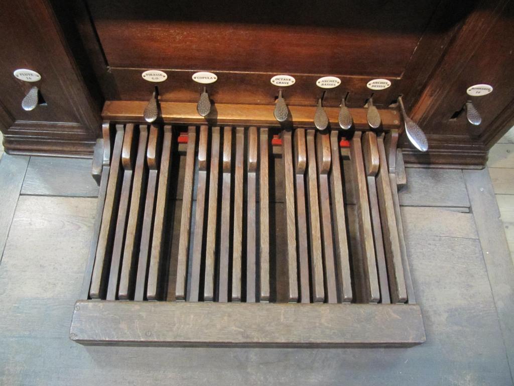Bourdon 16’ Montre 8’ Salicional 8’ Bourdon 8’ Prestant 4’ Quinte 2’2/3 Doublette 2’ Plein-Jeu III Trompette 8’ Clairon 4’ |