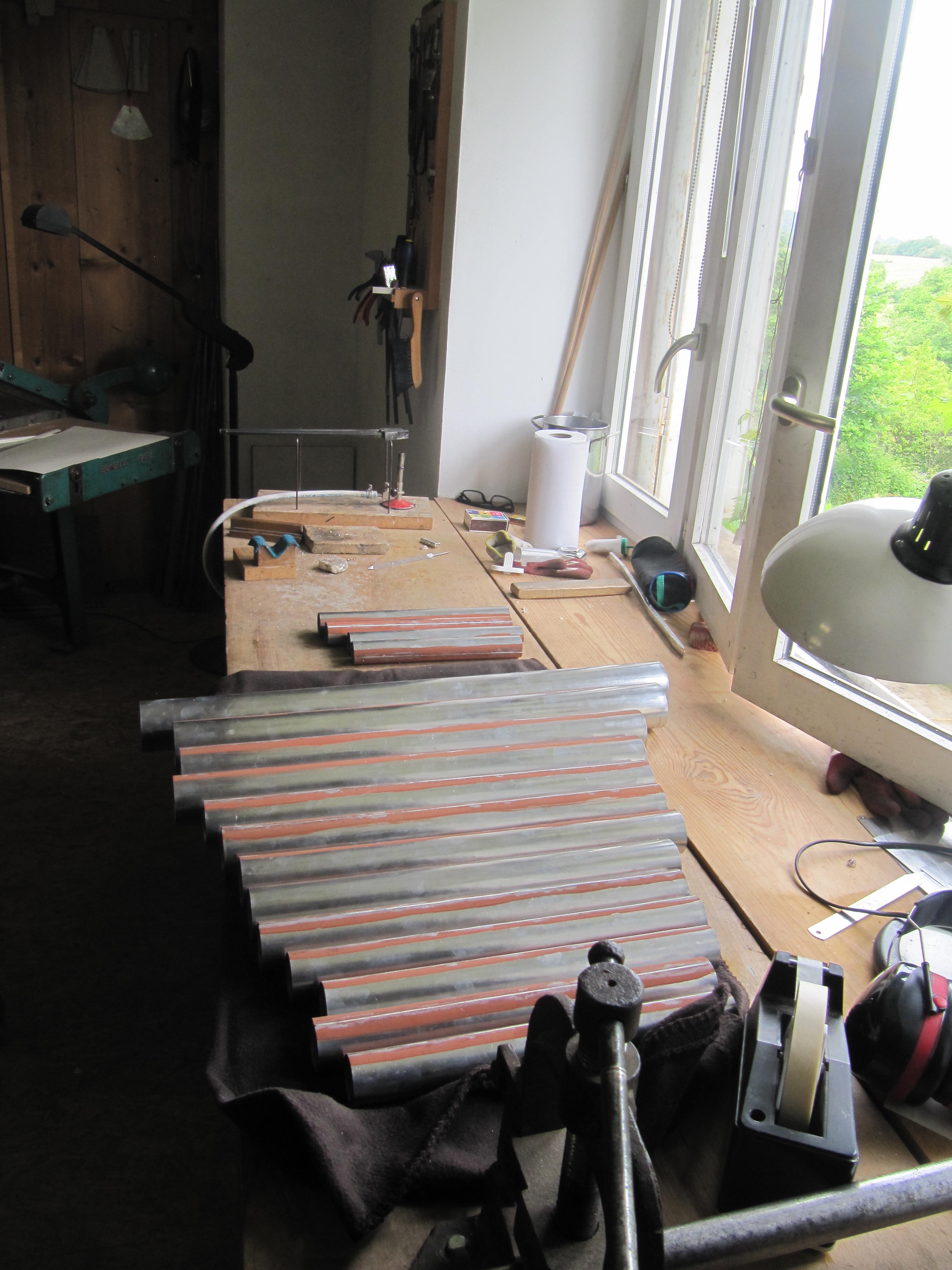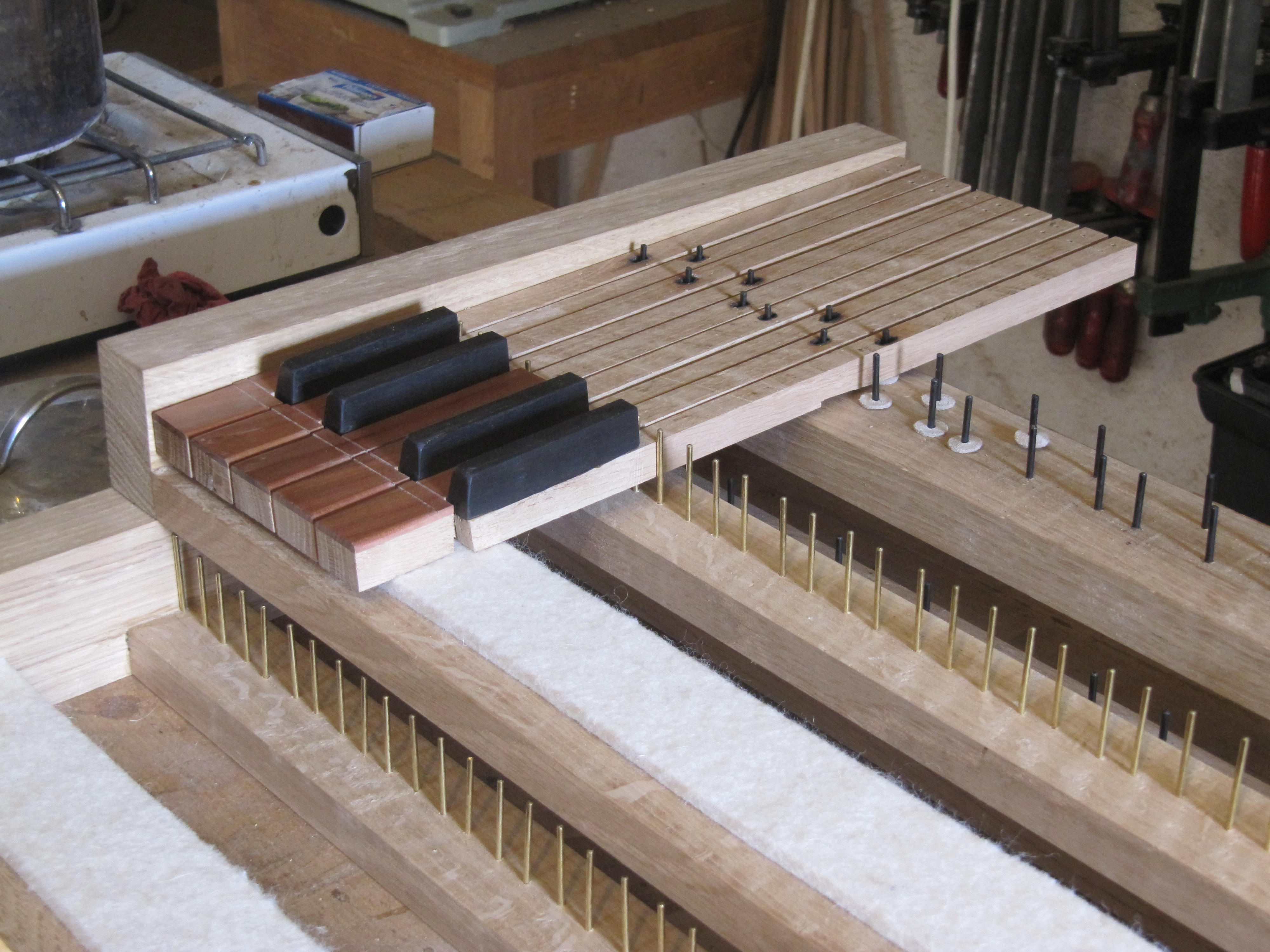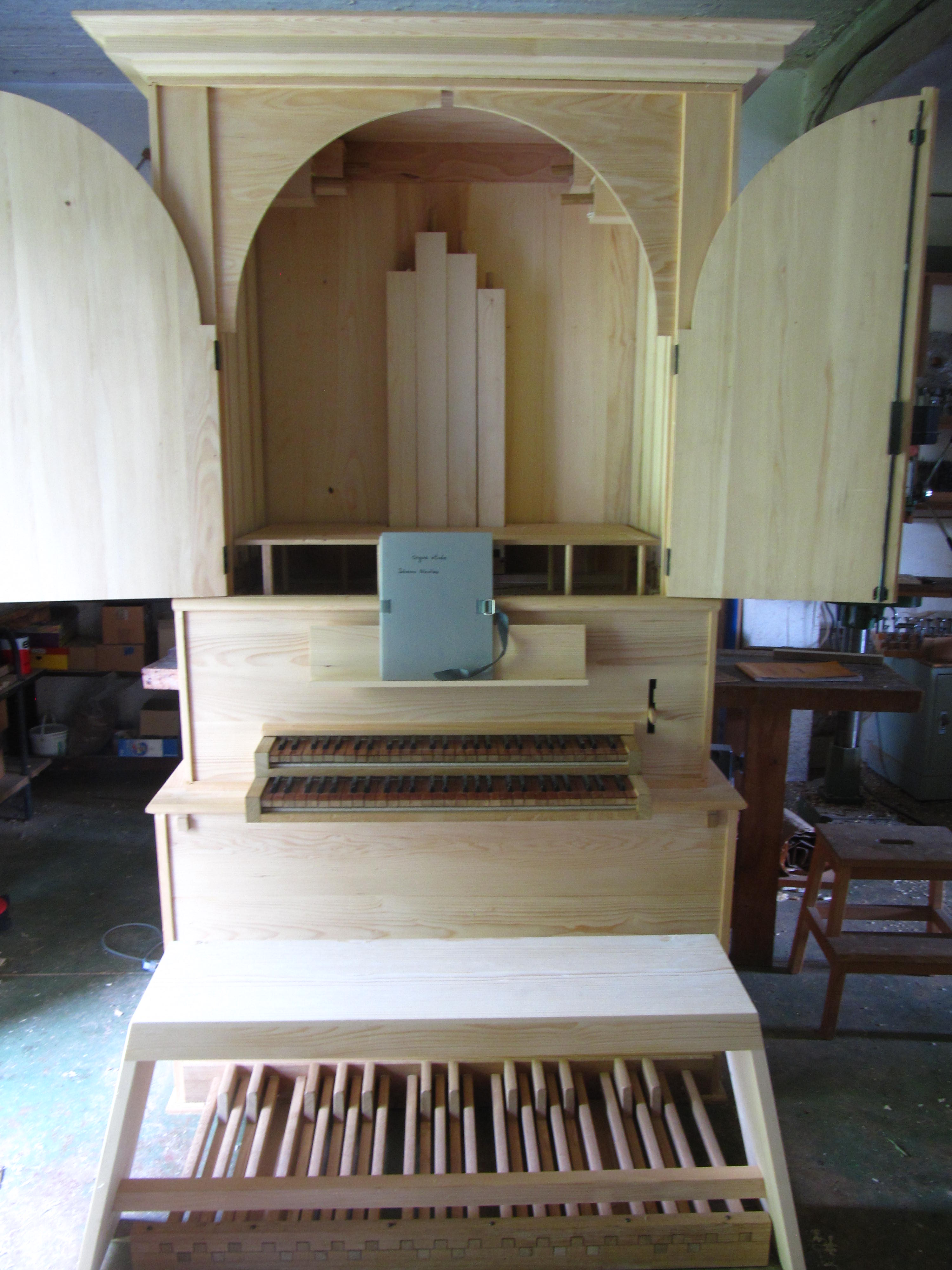 2 claviers de 56 notes et Pédale de 30 notes en tirasses. Accouplement réversible.